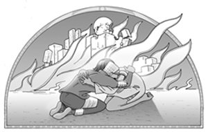 Schließlich war ich allein - allein mit einer ziemlich wütenden Erde. Immer noch rannte ich - hierhin, ein Spalt tat sich auf und ich rannte dorthin. Schließlich gab es nur noch einen einzigen Abgrund auf allen Seiten. Der Boden schwand unter meinen Füßen und ich stürzte in ein wahrhaftiges Höllenfeuer. So heiß, so schnell und so gründlich wurde ich niemals wieder lebendig gegrillt und verbrannt, obgleich sich zu den verschiedensten Zeiten Menschen immer wieder größte Mühe in diese Richtung gaben.